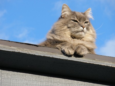neighbors cat. While Bob was alive Charlie never visited us. For some reason Bob did not like Charlie. He never told us why but Charlie could never step over to our side of the street. Charlie wanted to, but just watched from across the way. He probably wanted to come over and play with the community of cats we had at the time. But not while Bob was around. About a month after Bob passed away, Charlie came to visit….and he stayed. He decided that he wanted to live with us. We discussed this with the neighbors but how do you tell a cat where he should be living? He would go over and visit and would lay on our garage roof and watch them but he was perfectly content to live with us. So we all agreed to go along.