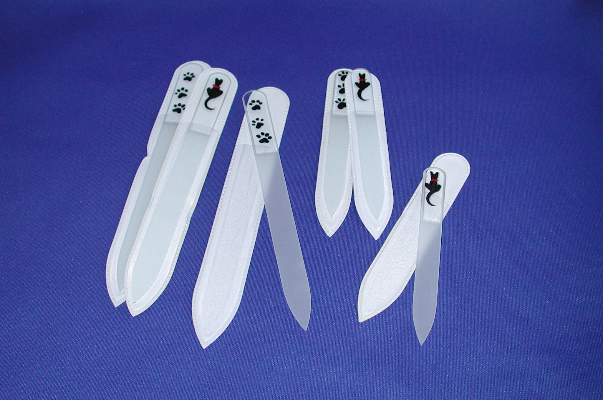 - These Custom printed Glass Nail Files are genuine crystal glass nail files made from Czech tempered glass. When you use emery boards or metal nail files they cause micro-fractures to your nails. The surface of a Crystal Glass Nail Files is so gentle it “seals” the edge of your nails reducing the splitting, cracking and peeling. With extended use your nails will be stronger.