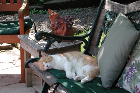 This is a story my husband told me when I got home one day. As he was telling the story, Bob was bouncing around the yard like he knew we were talking about him! This happened at a time when we had a litter of 4 kittens from a stray. They sat and watch this. My husband Phil and the cats were out in the back yard. Bob was walking on the lawn and stopped. He dug a hole and put his paw down it. Came up empty. He waited a second and put his paw down the hole again. He lifted his paw up out of the hole with a mole attached squeaking to high heaven. He batted it around a bit then picked it up and carried it over the the kittens. He dropped it in front of them, and strutted off. It was like he was saying to them, “That’s how you do it”. My husband was in shock. He had never seen a cat sense where a mole was and then dig it up! And on top of that teach little cats what to do. Now anytime we see a mole hole in one of our customers yard,(we have a landscape company) we think of Bob. If we could have hired him out we would have been millionaires.